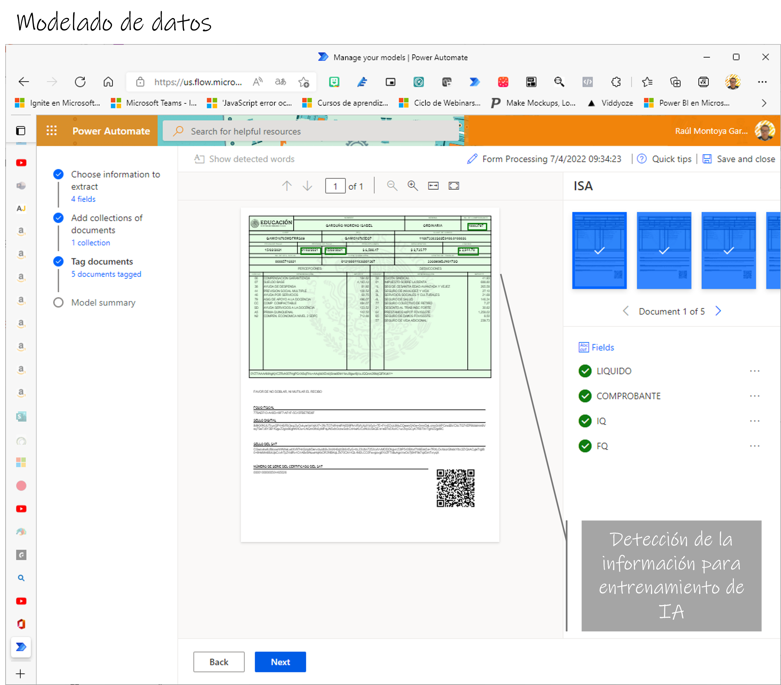 Entre las herramientas que ofrece Office 365 es la de Power Automate, aquí genere y entrene un modelo de IA que leyera todos los recibos de nomina en formato PDF, JPG y/o PNG y extrajera la información que necesito para la declaración.