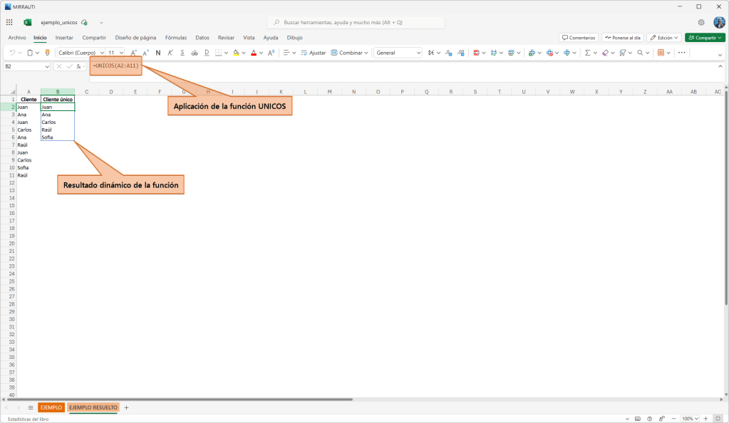 1. Función UNICOS(): Elimina duplicados fácilmente